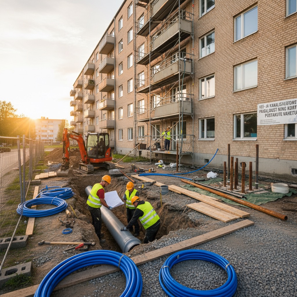 Teostame vee- ja kanalisatsioonitorustike paigaldust ning kortermajade püstakute vahetust professionaalse töökorraldusega.